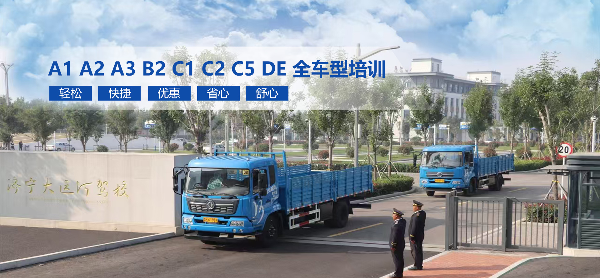 • 濟寧大運河駕駛員培訓有限公司成立于2011年7月,是經市交通運輸主管部門批準成立的一家綜合類機動車駕駛員培訓公司,我們位于濟寧市運河經濟開發區車站西路28號(西外環路與西十二路交匯處向東200米),占地面積160余畝,辦公面積1700平方米,現培訓車型有:大型載客汽車A1、通用貨車半掛車(牽引車)A2、城市公共汽車A3、大型貨車B2、小型汽車C1、小型自動擋汽車C2、殘疾人專用小型自動擋載客汽車C5、普通三輪摩托車D、普通兩輪摩托車E九種車型,教練車共計86輛(其中A1:1輛、A2:18輛、A3:1輛、B2:22輛、C1:32輛、C2:5輛、C5:1輛、D:4輛、E:2輛),2020年9月經市審批主管部門批準設立道路客貨運輸駕駛員從業資格培訓及考場,可為各類從業駕駛員辦理從業資格證提供一站式服務。